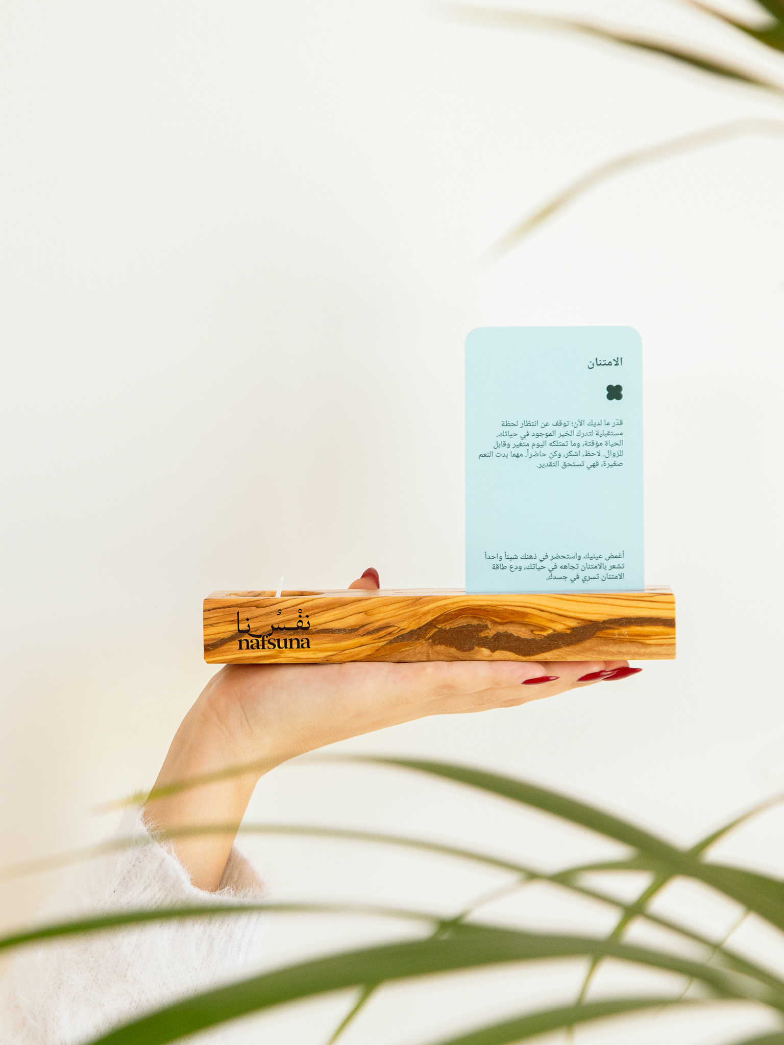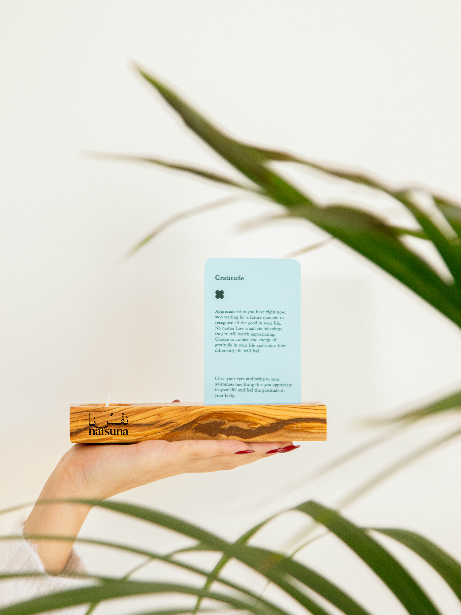 Made from 100% Jordanian olive wood, each stand is a unique creation, showcasing the timeless beauty of the wood and the skill of local artisans. It’s designed to hold your Inner Journey Cards, transforming them into a powerful, daily ritual that anchors you in the present moment. But that’s not all—it also serves as an incense holder and candle holder, adding a serene touch to your reflection, meditation, or simply bringing peace to your environment.